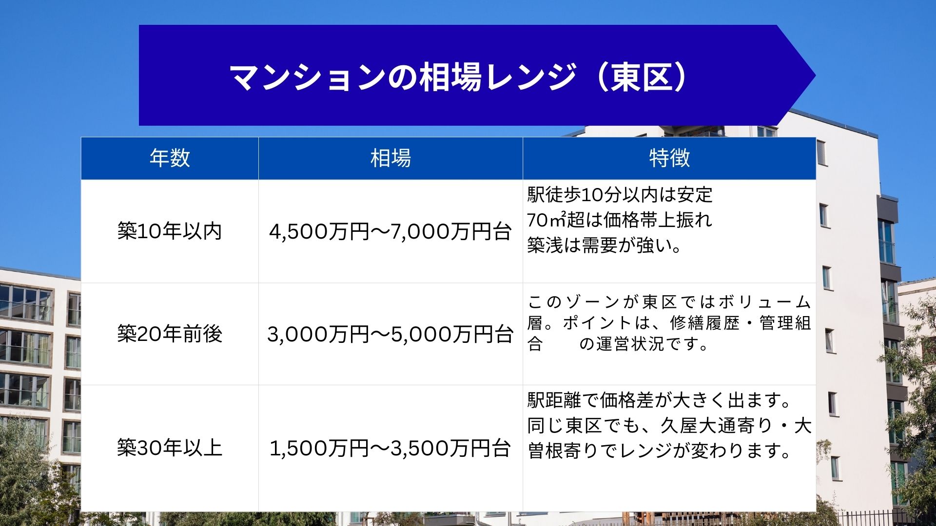 東区の相場を見るときの3つの視点