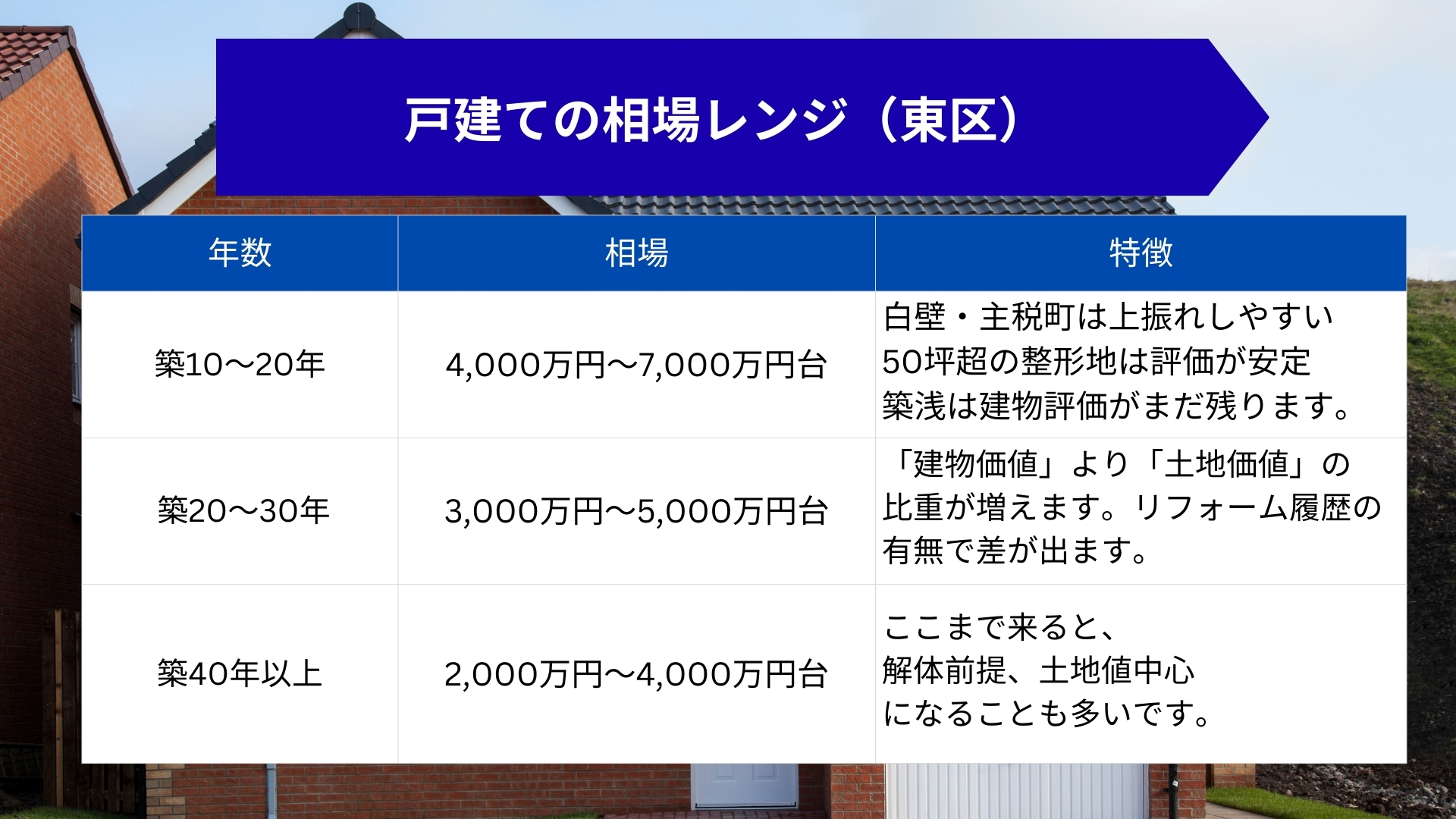 ✔ 戸建て:築年数で大きく差