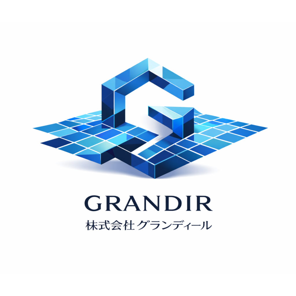 本ロゴは、「GRANDIR=成長・発展」という理念を基に、不動産の本質である“土地と価値の広がり”を立体的に表現したデザインです。