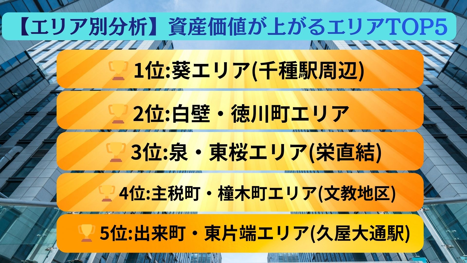【エリア別分析】資産価値が上がるエリアTOP5